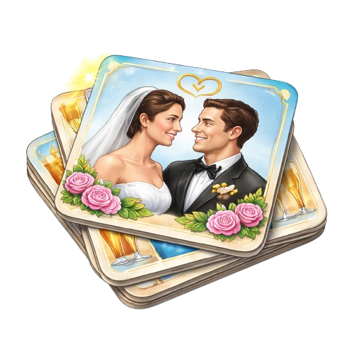 my.Enigmats invites each of your guests to be part of your wedding - through elegant printed coasters that unlock a private celebration built around your journey.